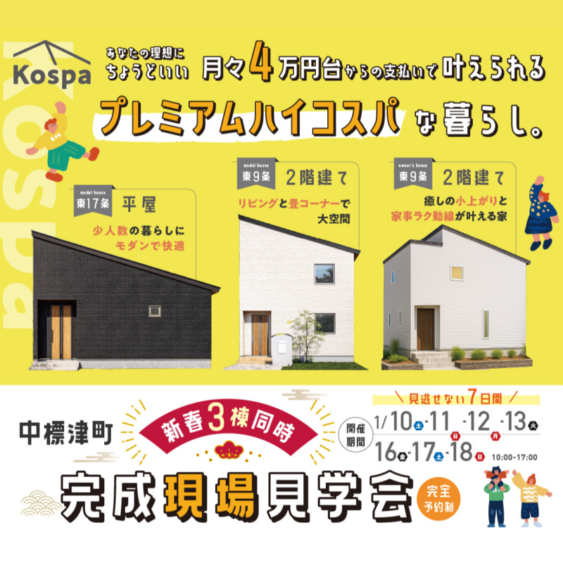 【中標津町】新春3棟同時見学会開催!人気の間取りを一気に見比べるチャンス♪7日間限定公開