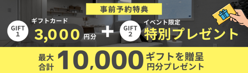 ・ギフトのお渡しは初回来場時、弊社の新築住宅に関するご説明をお聞き頂き、次回ご来場時 となります。