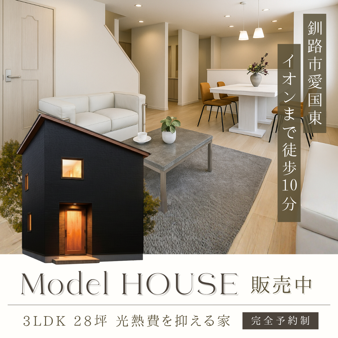 - 【釧路市愛国東4丁目】3LDKナチュラルデザインのお家を先行販売中!イオン釧路店まで徒歩10分のモデルハウス