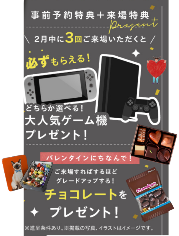 ・来場特典の対象は前日までのご予約の方が対象となります。