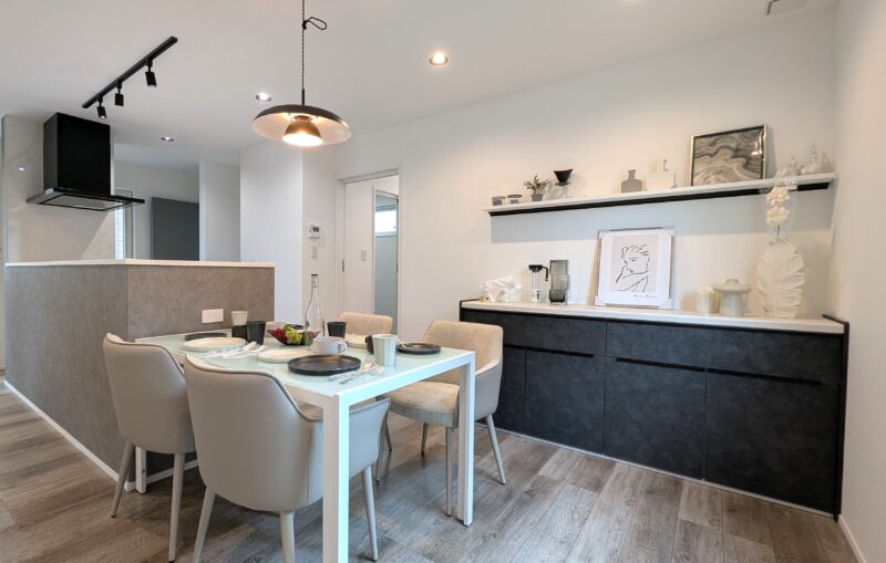 キッチンから水回り、収納への動線がコンパクトにまとまり、料理や選択が効率よく完結。子育て世帯の忙しい日常をサポートし、将来も無駄のない暮らしが続きます。