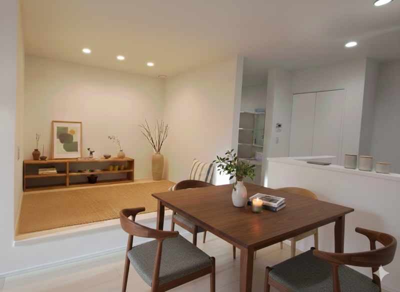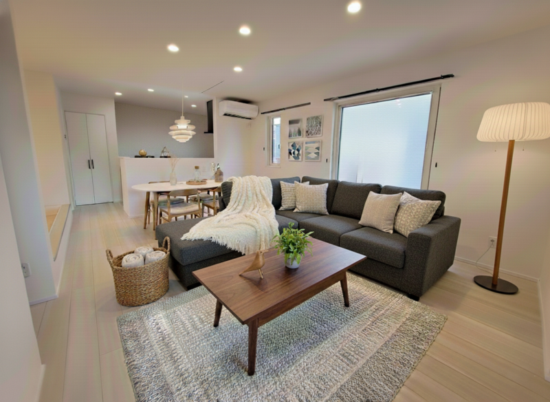 外の景色を感じながら、明るくのびやかな時間を過ごせる空間です。朝は爽やかな光に包まれて気持ちよく目覚め、日中は家族の笑顔が集まる心地よい場所に。ゆったりとくつろいだり、会話を楽しんだり、毎日の暮らしにやさしく寄り添うリビングです。