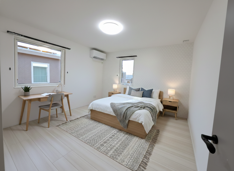 各居室に十分な広さを確保しているため、ベッドやデスクを置いても圧迫感がなく、自分らしいレイアウトが楽しめます。寝室としてはもちろん、子ども部屋や書斎としても快適に使え、家族それぞれのプライベート時間を大切にできる設計です。