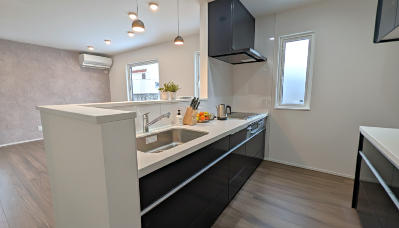 ③広々キッチンで料理がしやすく、キッチン回りもスッキリ片付く