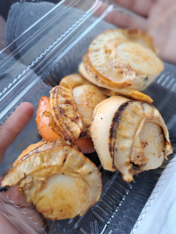 次に向かったのは、大きなホタテ焼きのお店。炭火でじっくり焼かれたホタテは香ばしく、口に入れた瞬間に海の香りが広がって、思わず笑みがこぼれました。やっぱり地元の海鮮は格別ですね。