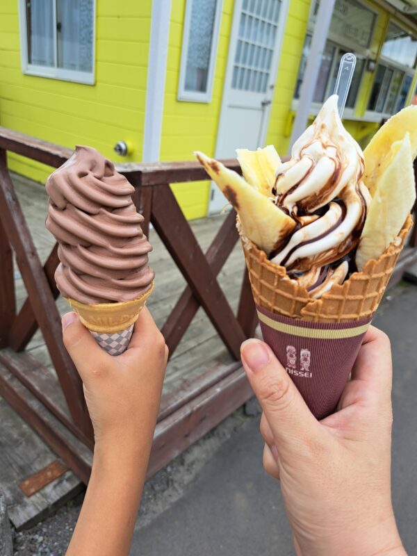 関東に住んでいた時はソフトクリームを全然食べなかったんですが、北海道は素材が違うからなのか別格に美味しいんですよね!