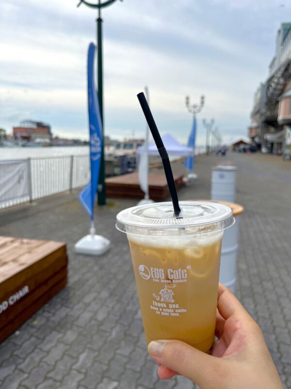 釧路の海沿いではちみつラテ