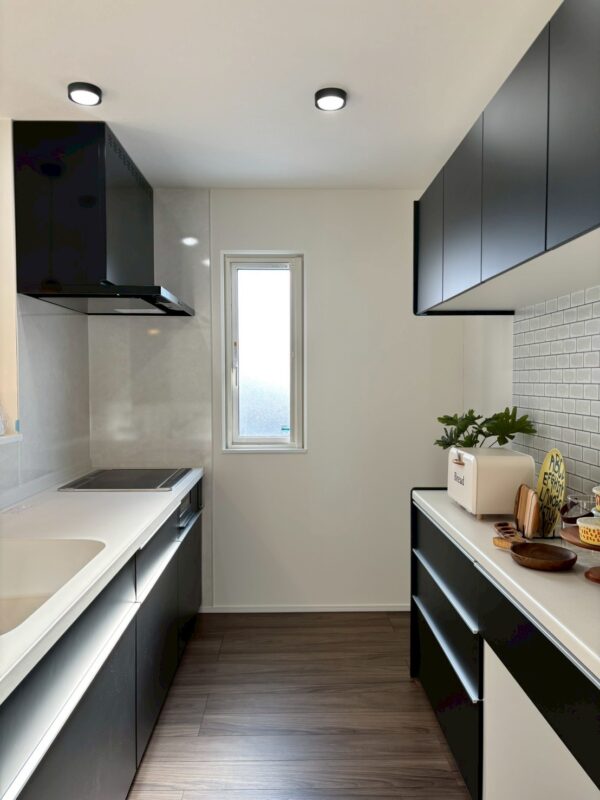 広々としたキッチンスペースは、毎日の家事をスムーズにしてくれる心強い存在。作業スペースもしっかり確保されているので、家族で並んで料理を楽しむこともできます。動きやすい配置で、忙しい日常もストレスなく過ごせます。